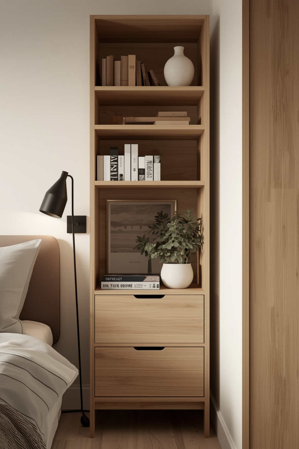 3.minimalist bedside storage unit with vertical design