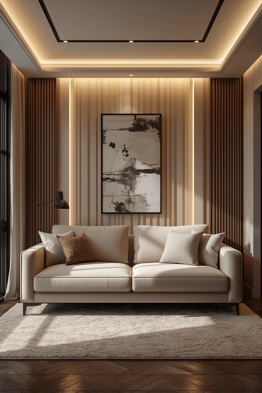 Luxury doesn’t require a large space. A small living room can look high-end with the right design elements. Using vertical wall panels and soft lighting creates an illusion of height and space.