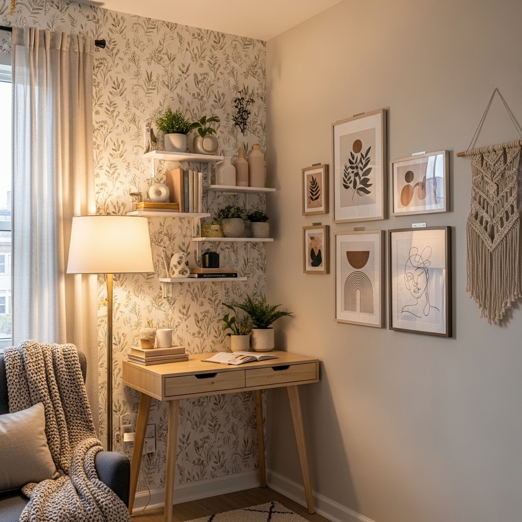DIY wall art is a perfect way to personalise a small apartment. You don’t need expensive materials; simple canvases, framed prints, or handmade crafts can transform any blank wall. Use removable wallpaper, paint patterns, or washi tape designs to add colour without commitment. Floating shelves can display small decorative items or photos. Gallery walls with your favourite artwork or photographs create a cozy, artistic vibe. Incorporating plants and textures can enhance the aesthetic. These small apartment DIY wall art ideas make your space unique, stylish, and budget-friendly while reflecting your personality.