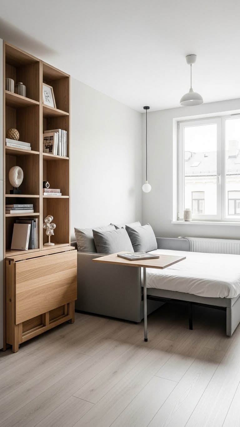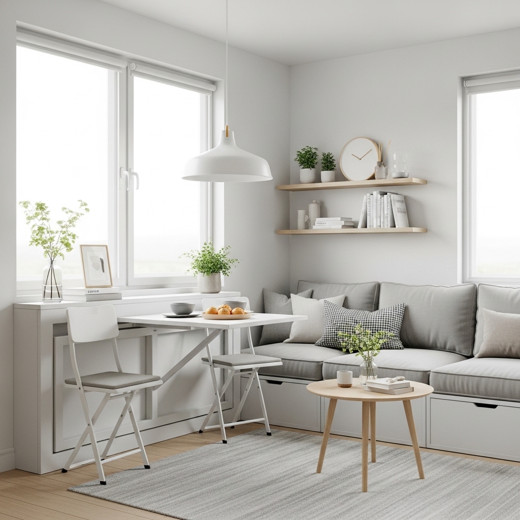 Space-saving furniture is essential in tiny apartments. Opt for fold-able tables, sofa beds, and nesting chairs to maximize functionality. Storage ottomans, wall-mounted desks, and stack-able shelves keep floors clear. Furniture with hidden compartments provides extra storage without clutter. Use modular pieces that can be rearranged for different needs. Transparent or light-coloured furniture visually opens the room. Multi-purpose items, like beds with drawers underneath or extendable tables, combine practicality with style. These space-saving furniture ideas help tiny apartments feel organised, spacious, and stylish, making small living spaces comfortable and efficient without sacrificing design or aesthetics.