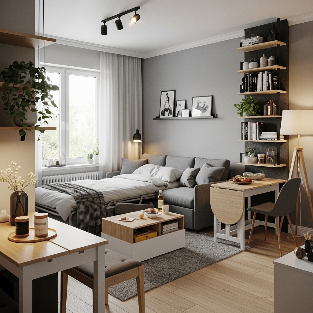 Designing a small studio apartment can be challenging, but the right strategies make it feel spacious and inviting. Use vertical space with shelves and hanging organiser. Choose multi-functional furniture like sofa beds or fold-able dining tables. Neutral colours and mirrors can visually expand your space. Divide your studio into functional zones using rugs, curtains, or furniture placement. Keep decor minimal and personal select a few key accents that reflect your style. Good lighting is essential: combine natural light, floor lamps, and accent lights. With these small studio apartment interior design tips, your compact home can be both stylish and highly functional.