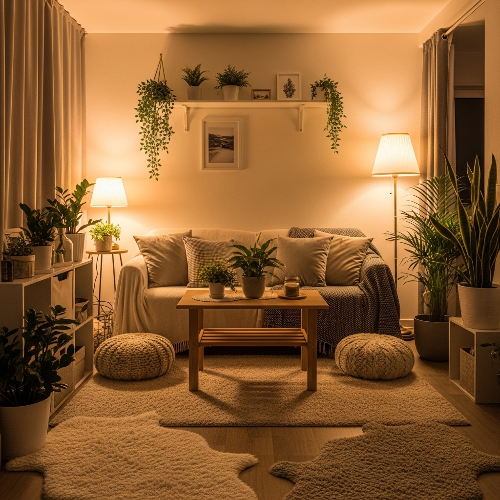Creating a beautiful apartment on a budget is easier than you think! Focus on affordable decor items like removable wallpaper, thrift-ed furniture, and DIY wall art. Rearrange existing furniture to optimise space and add multi-functional pieces like storage ottomans. Small details like cushions, rugs, and curtains can drastically improve the look without spending much. Lighting also plays a crucial role; use LED string lights or desk lamps for ambiance. Remember, simplicity is key avoid clutter and focus on items that add value to both style and functionality. These budget-friendly small apartment decor ideas help you achieve a chic space without overspending.