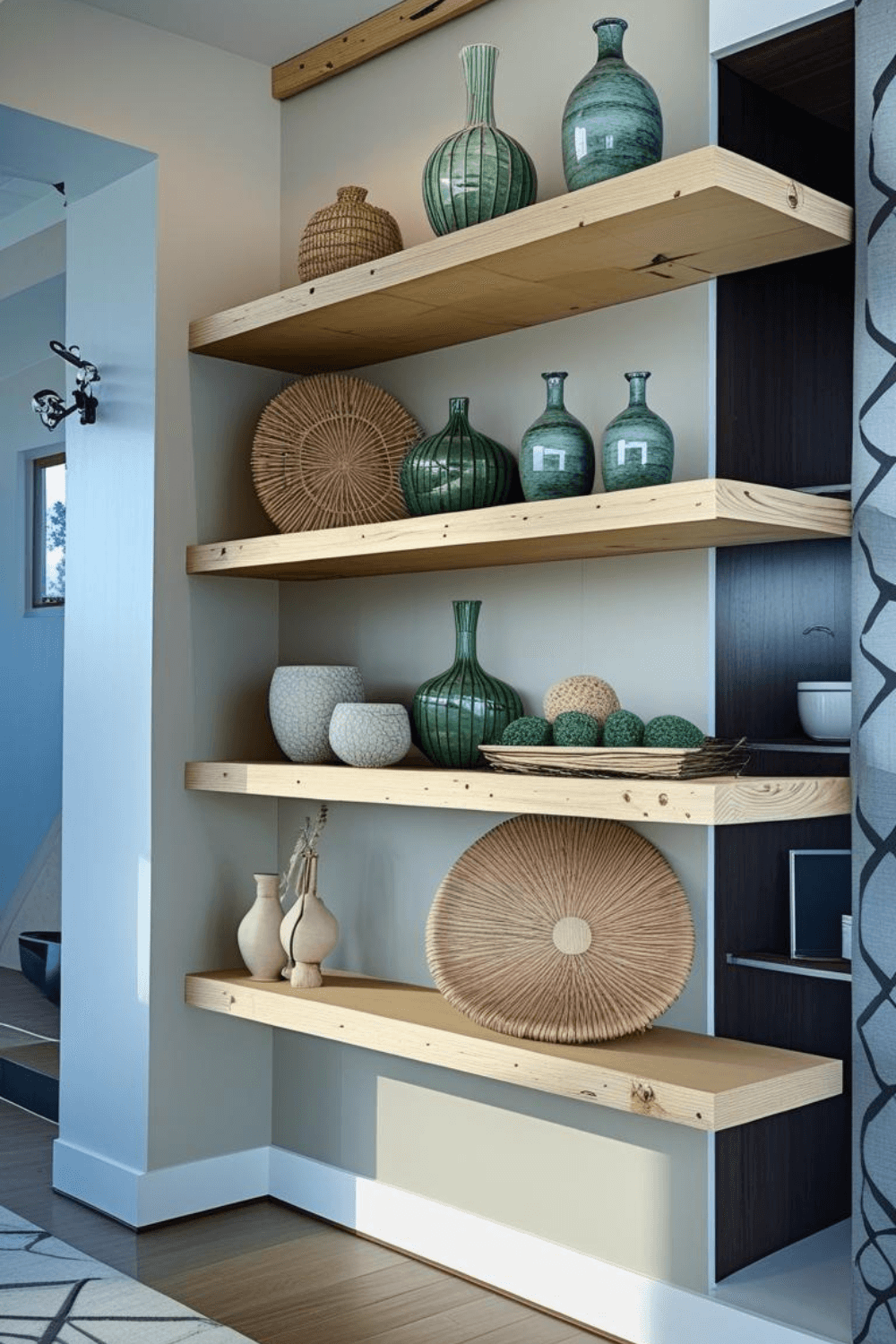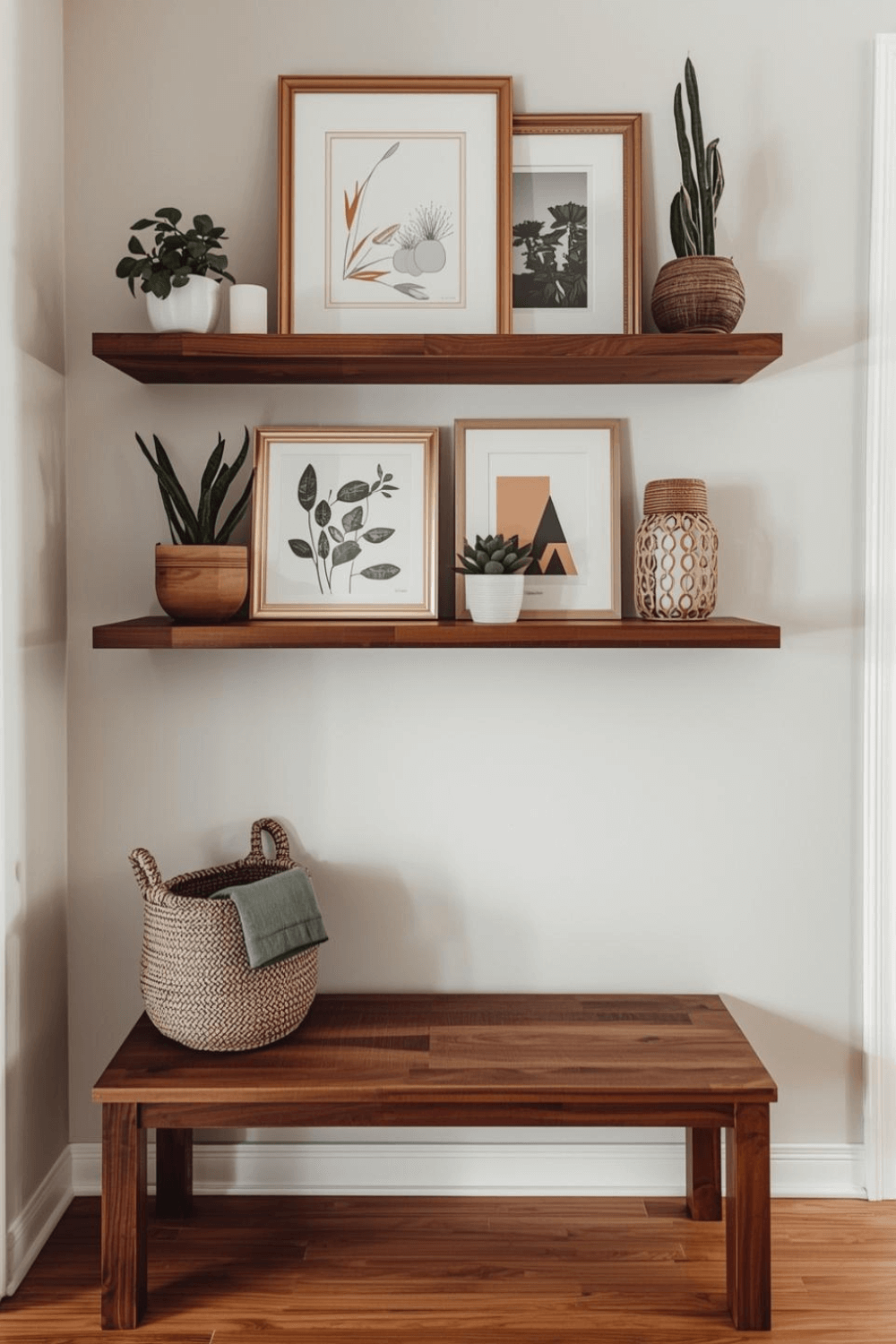 4. Entryway Wall Decor Ideas Using Floating Shelves
