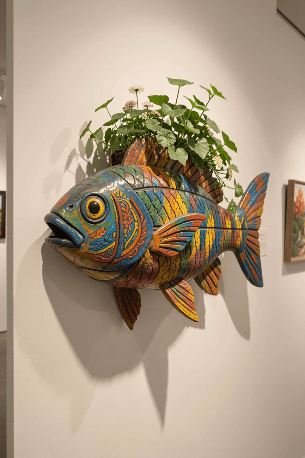 Animal-shaped wall planters are a great way to add character and warmth to garden spaces. A fish design feels playful yet balanced, especially when paired with natural greenery. These planters often become conversation pieces, drawing attention from guests and adding personality to the garden.