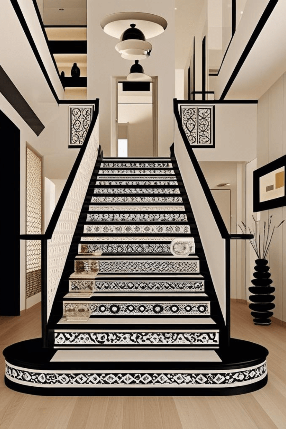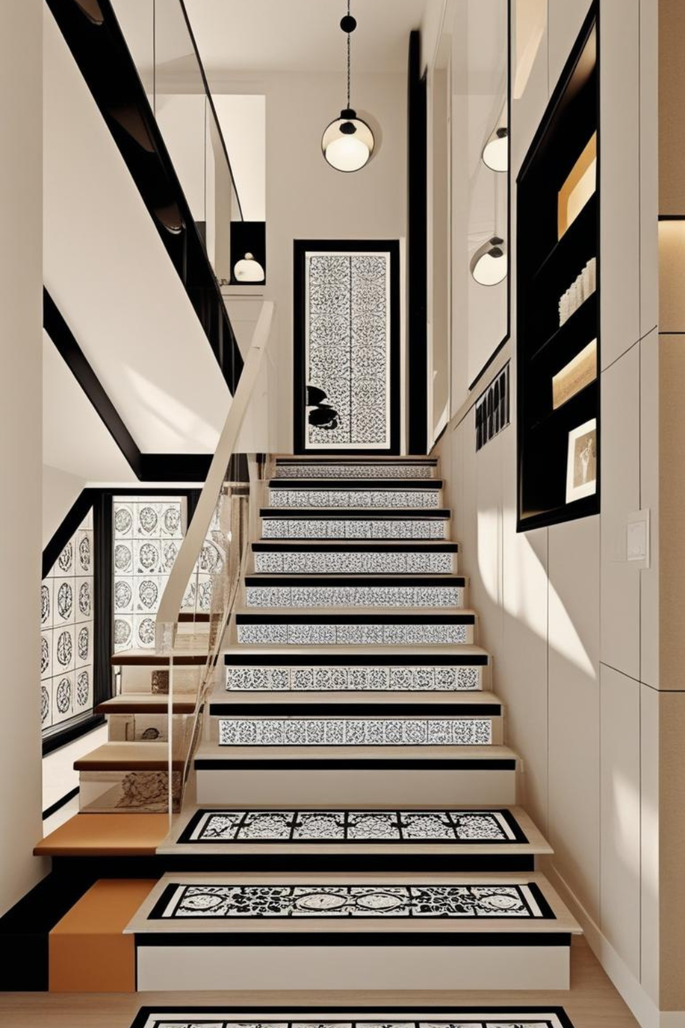 Modern Staircase Tile Design Ideas with Black and White Patterned Steps