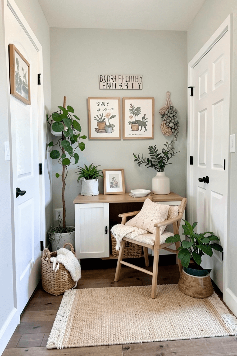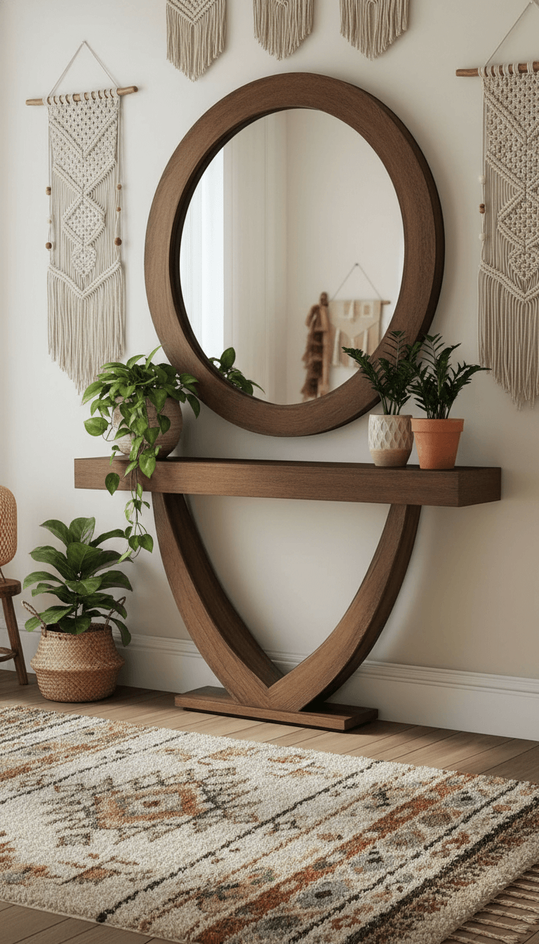 Boho entryway decor brings warmth and creativity into your home. Natural textures, woven rugs, macrame wall hangings, and indoor plants define this style. Earthy colors and handmade decor create a relaxed and inviting atmosphere. Boho entryway decor is perfect for those who love artistic and cozy spaces that feel personal and welcoming.