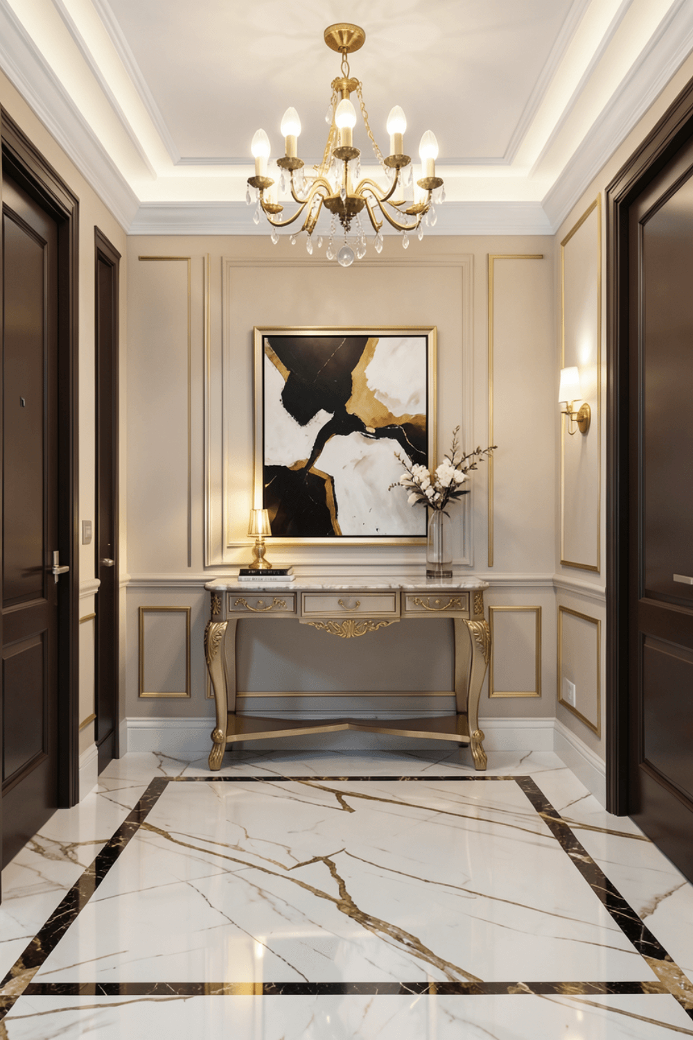 Luxury entryway decor adds elegance and sophistication to your home. Marble floors, gold accents, and designer lighting instantly elevate the entrance area. Large mirrors and stylish console tables enhance both beauty and functionality. Fresh flowers and premium decor pieces add a refined finishing touch. Luxury entryway decor is all about creating a dramatic and welcoming atmosphere that leaves guests impressed the moment they walk in.