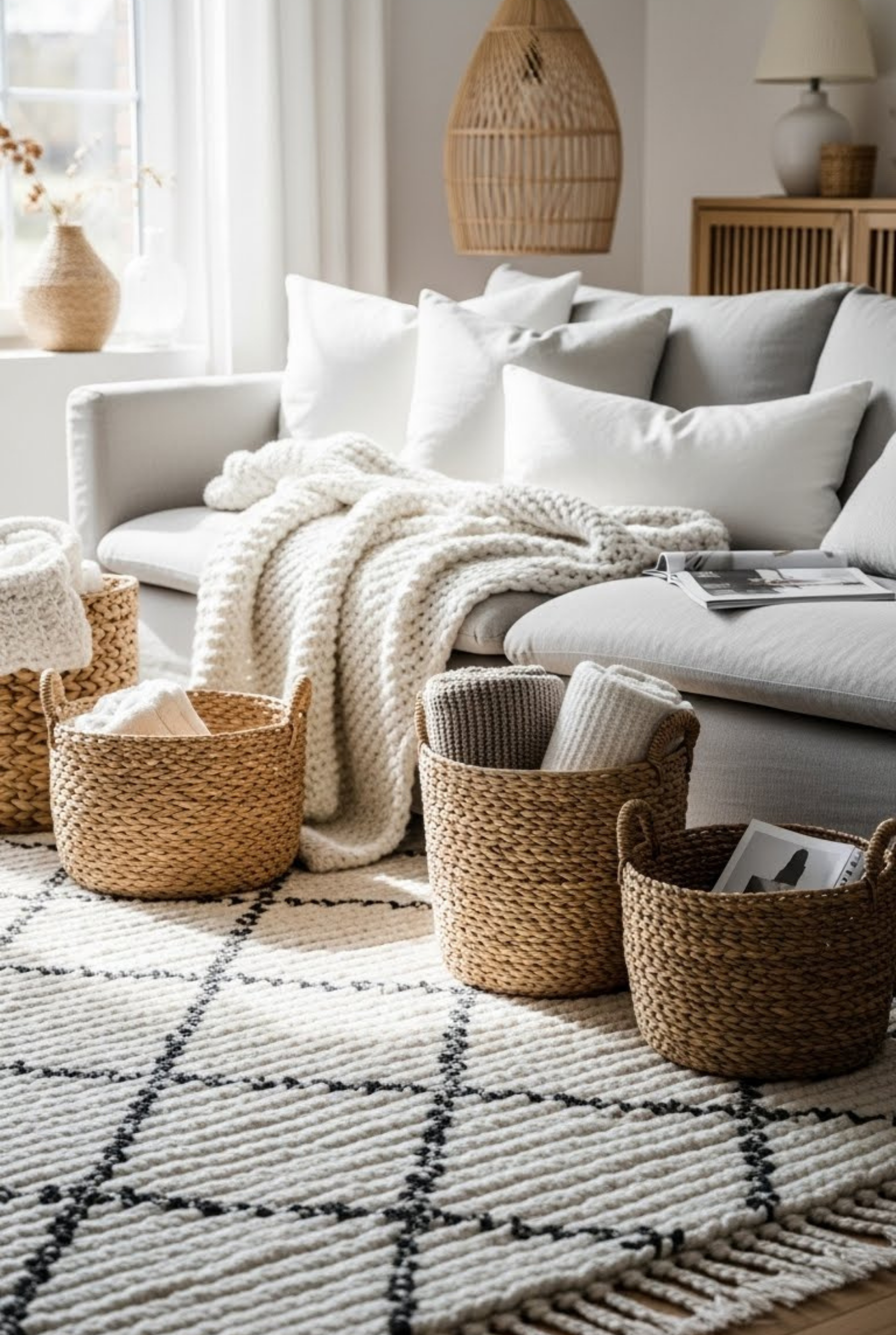 Decorating a white living room with texture prevents it from looking flat. Mixing fabrics like linen, wool, and cotton adds depth. Textured rugs, woven baskets, and subtle wall art create visual interest while keeping the white theme intact. This approach makes the space feel richer and more inviting.