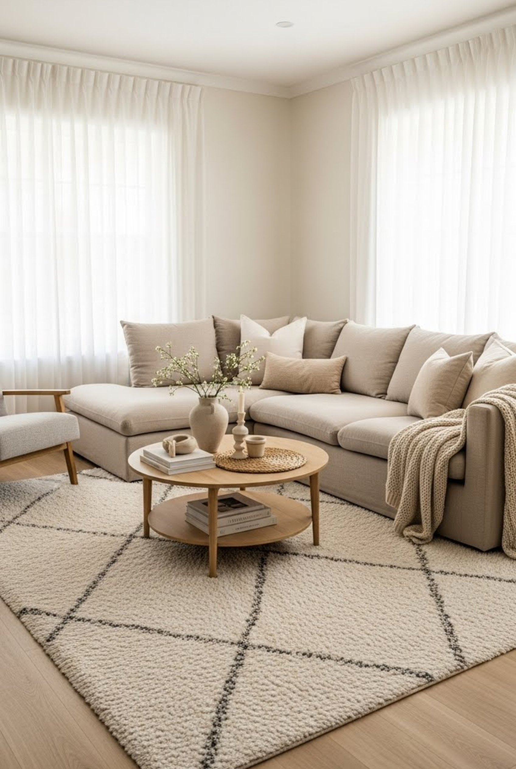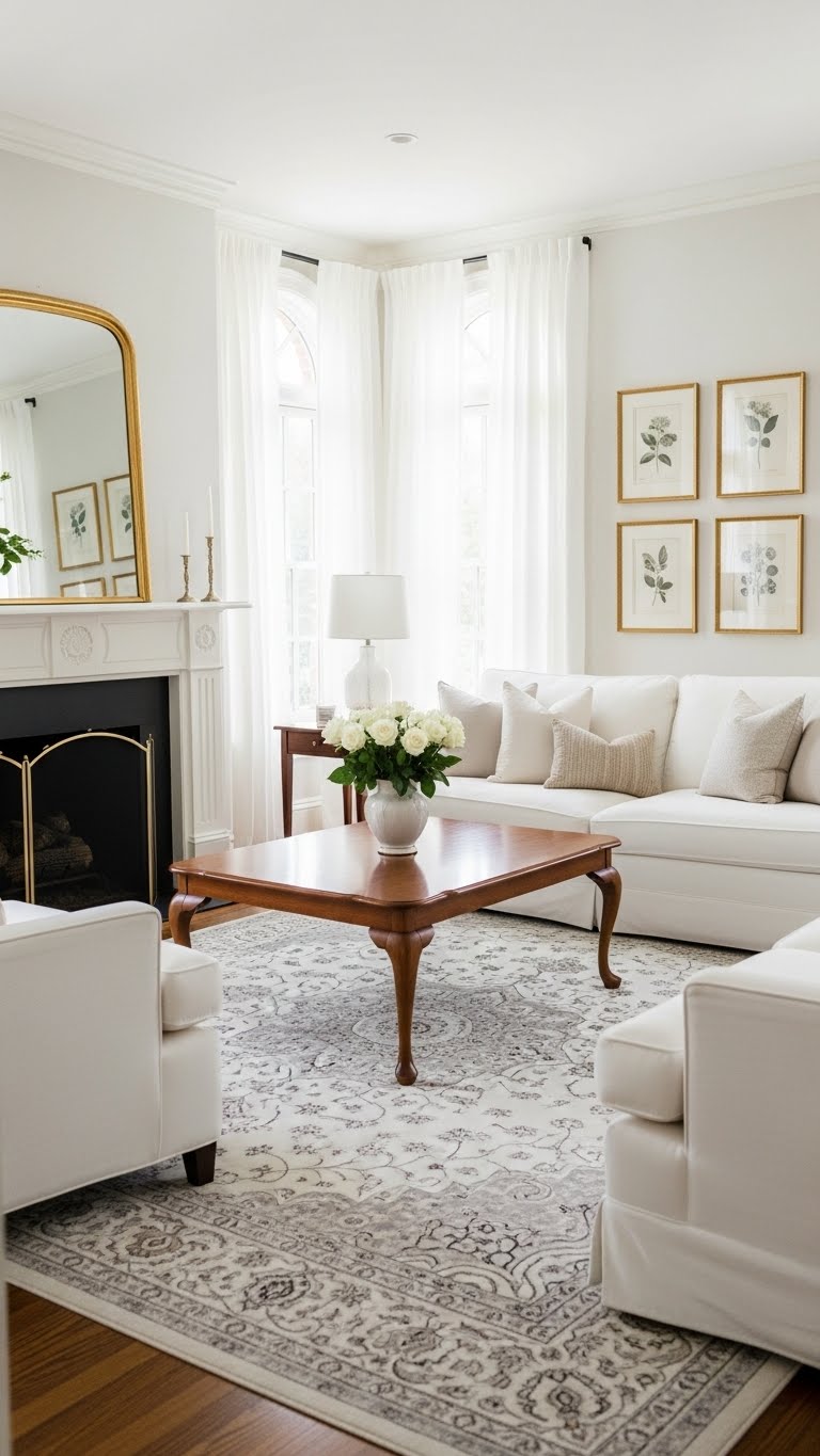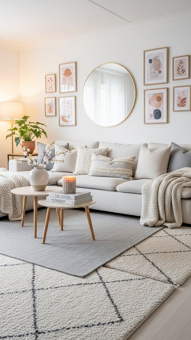 24.White Living Room With Layered Decor