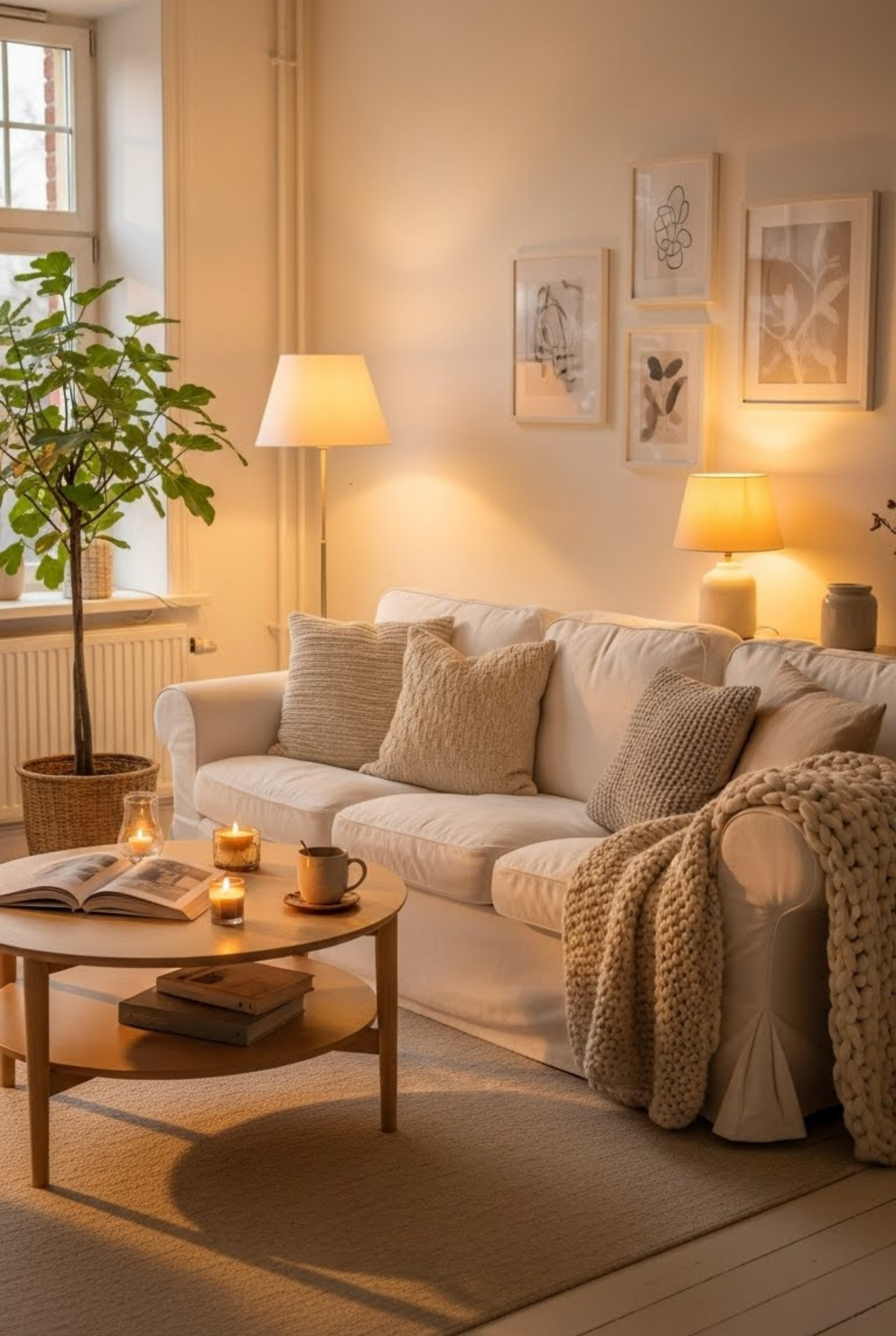A cozy white living room feels calm, warm, and welcoming when soft textures and layered decor are used. White walls paired with plush sofas, neutral rugs, and warm lighting create balance. Adding throw pillows, wooden accents, and soft curtains helps the space feel lived-in rather than cold or empty.