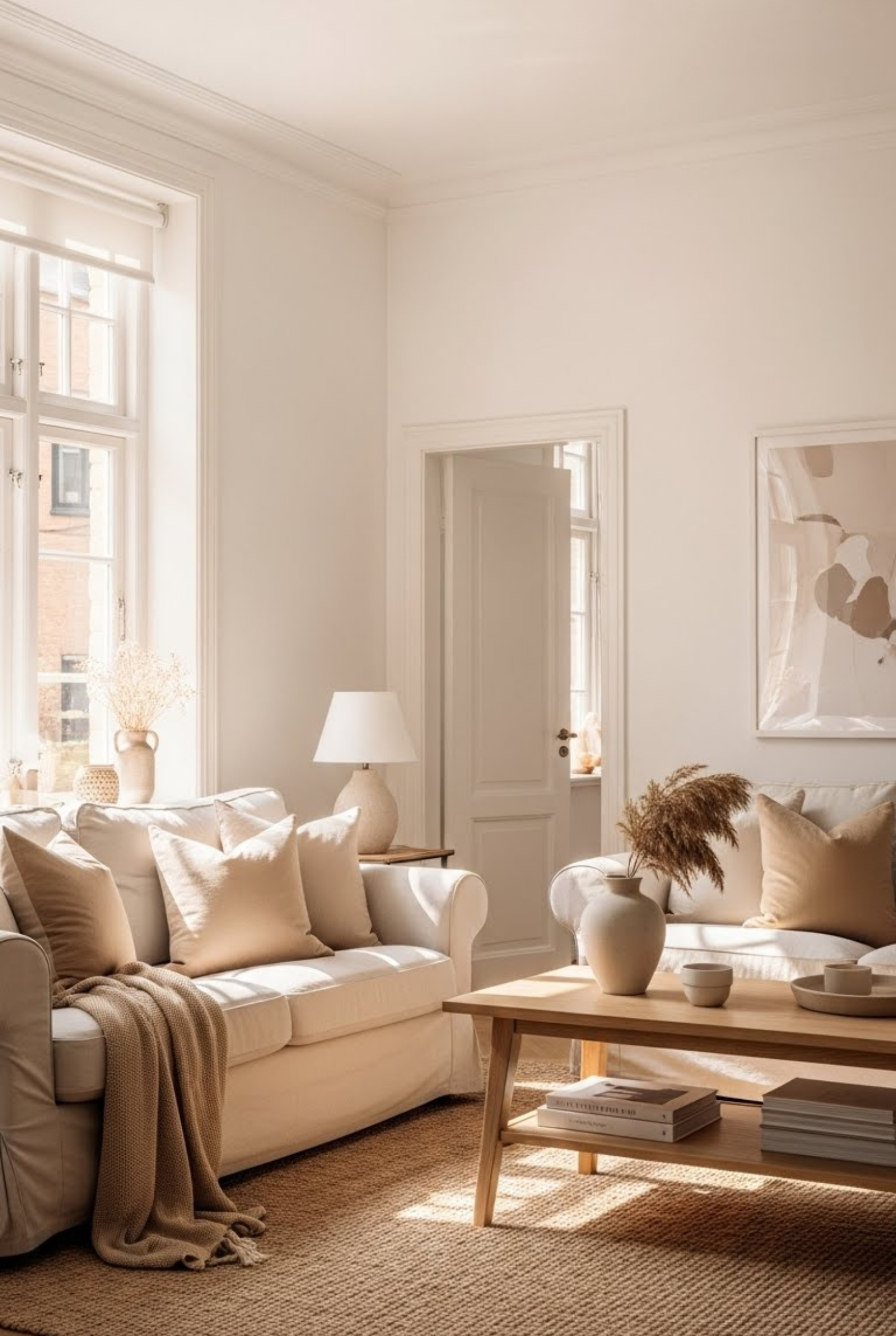 18.White Living Room With Beige Accents